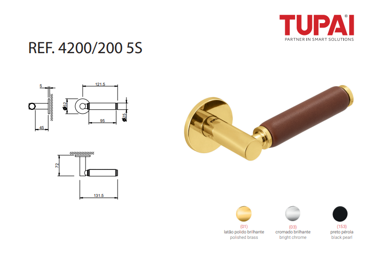 Klamka drzwiowa 4200/201 5S kolekcja 5S LEATHER na rozecie okrągłej w kolorze złotym